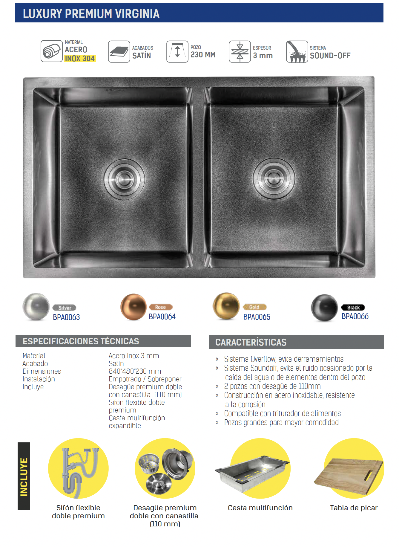 - Sistema Soundoff, evita el ruido ocasionado por la caída del agua o de elementos dentro del pozo.