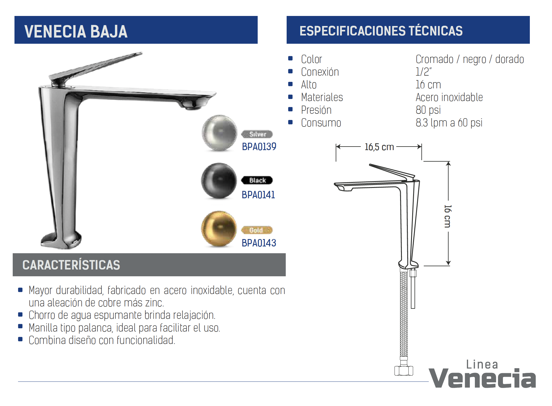 - Manilla tipo palanca, ideal para facilitar el uso.