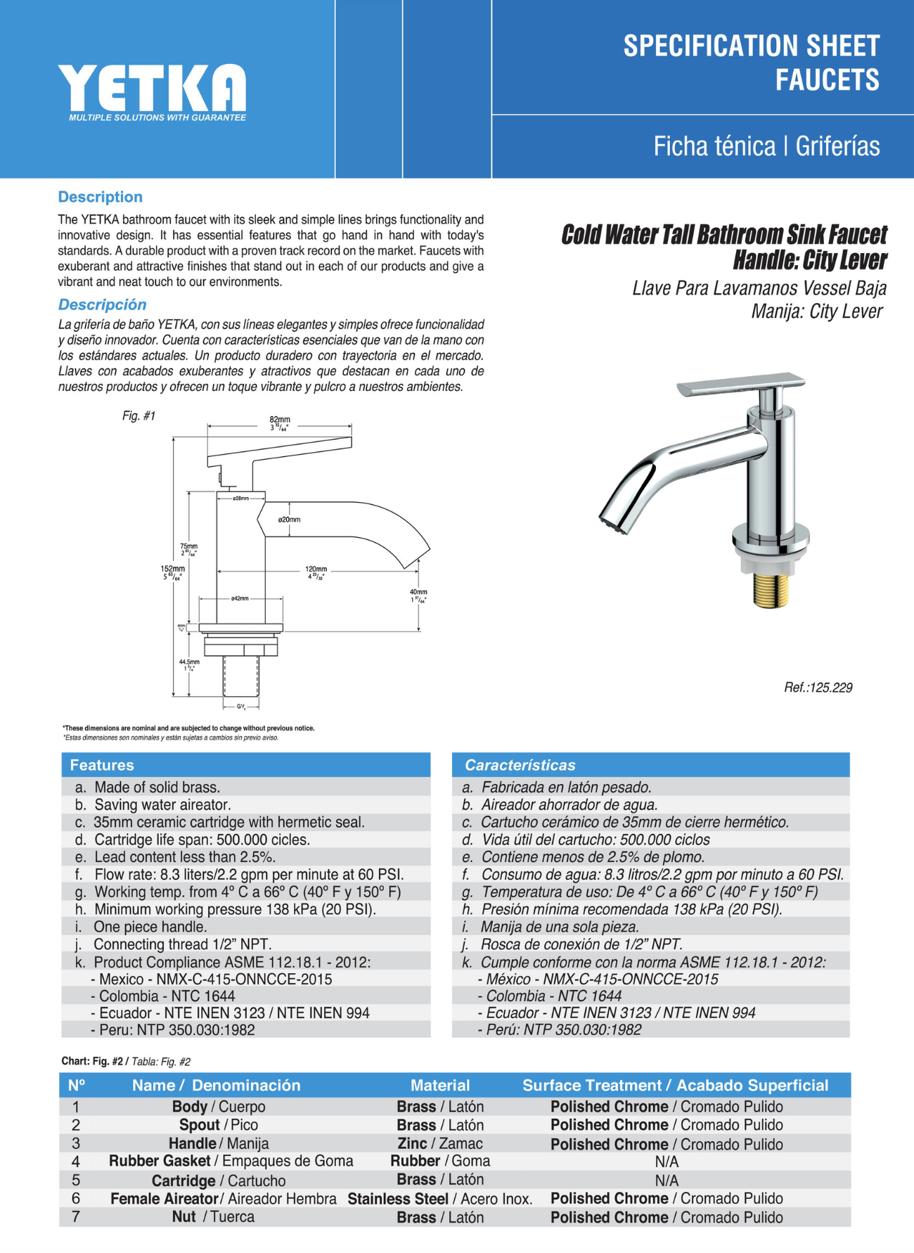 - Su cuerpo metálico reforzado aporta durabilidad, resistencia a la corrosión y estabilidad en el uso diario. La manija City, ergonómica y estilizada, permite un control suave del flujo y la temperatura del agua, garantizando comodidad y precisión.