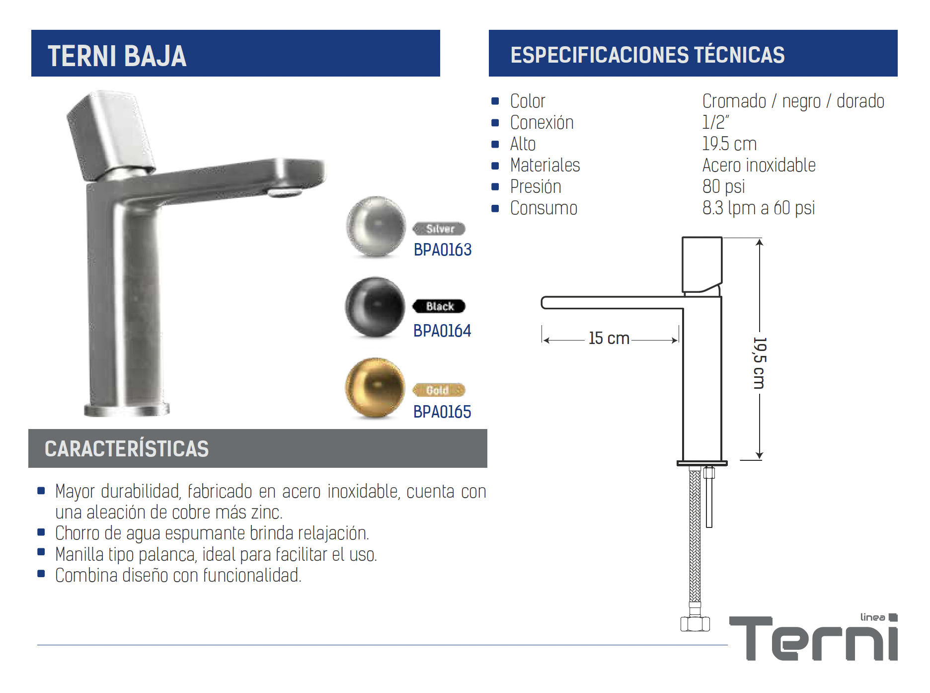 - Manilla tipo palanca, ideal para facilitar el uso.