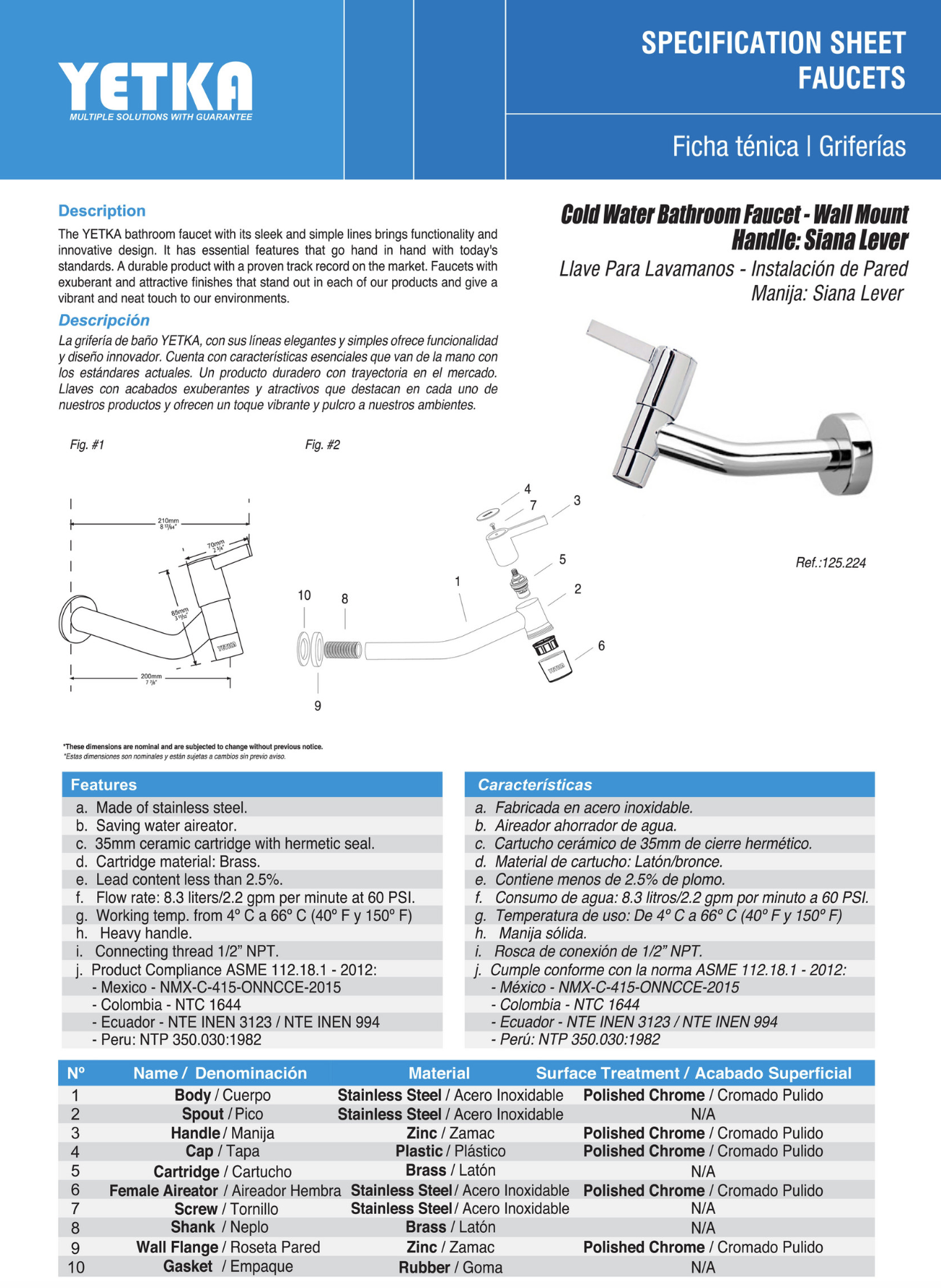 - La llave para lavabo de pared Siana Lever ofrece un diseño elegante, moderno y funcional que transforma cualquier baño en un espacio más limpio y estilizado.