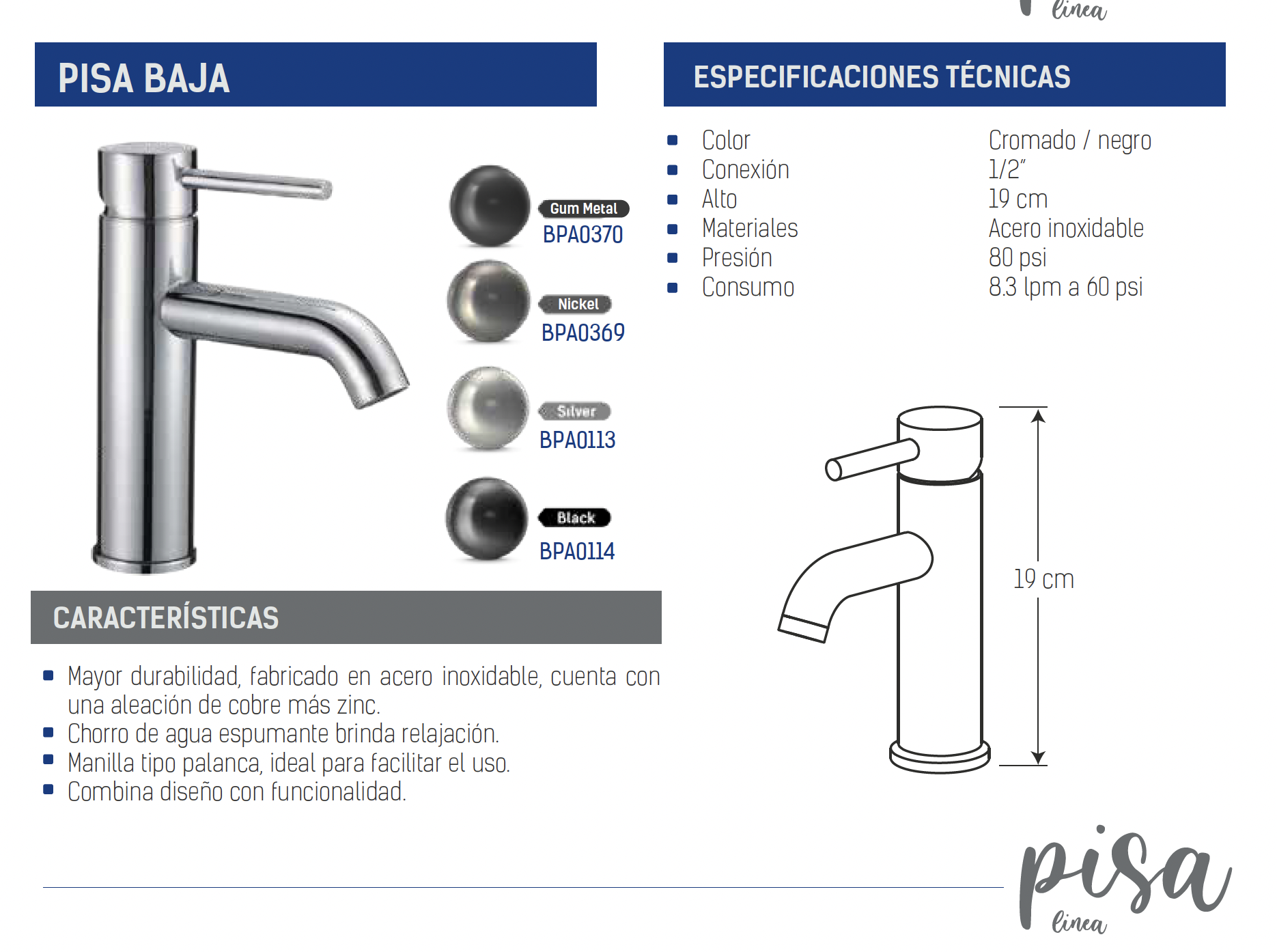 GPL0988 BEELEE GRIFERIA PISA GUM METAL MEZCL BAJA REDONDA - GRIS