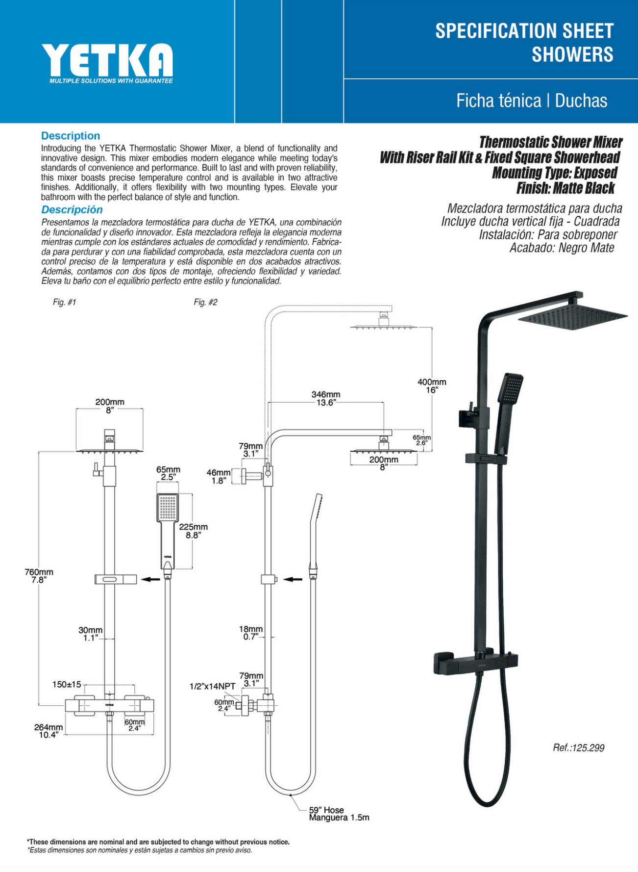 - Manguera: Acero inoxidable reforzada de 1.5 m
