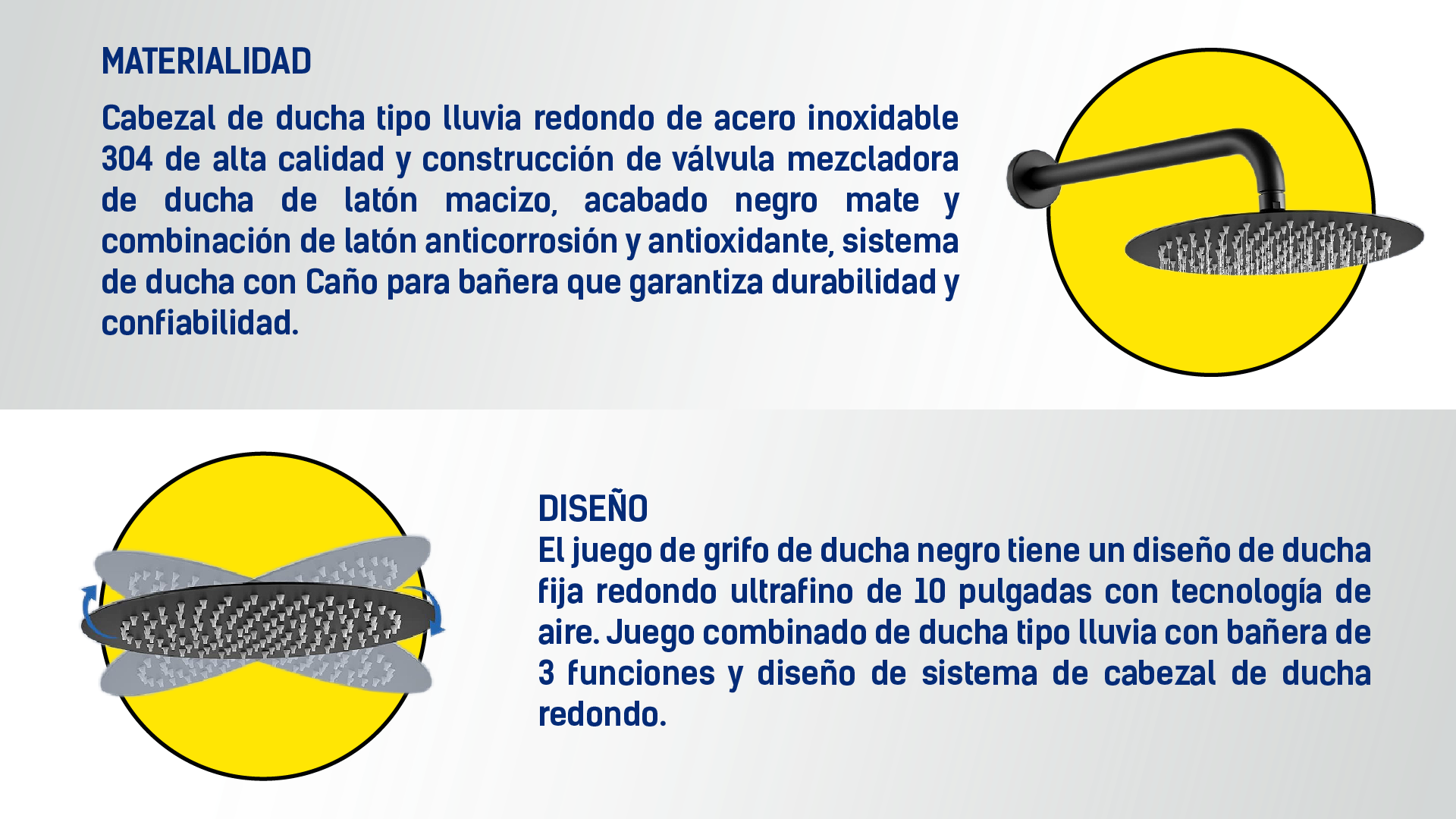 - Cabeza de ducha fabricada en resinas plásticas de alta resistencia.