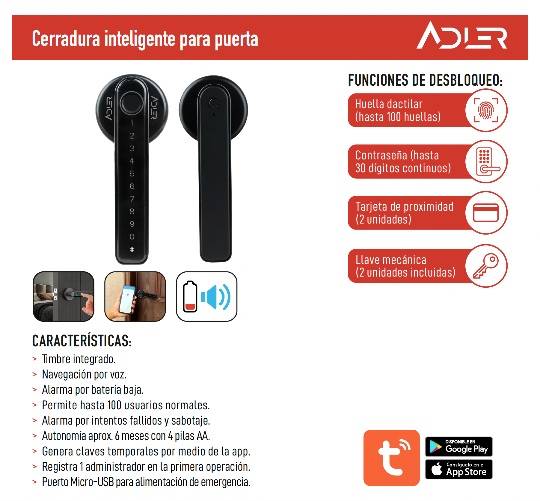 GPL1046 ADLER CERRADURA INTELIGENTE ILOCK 204 - MANIJA DORMITORIO (BLACK)