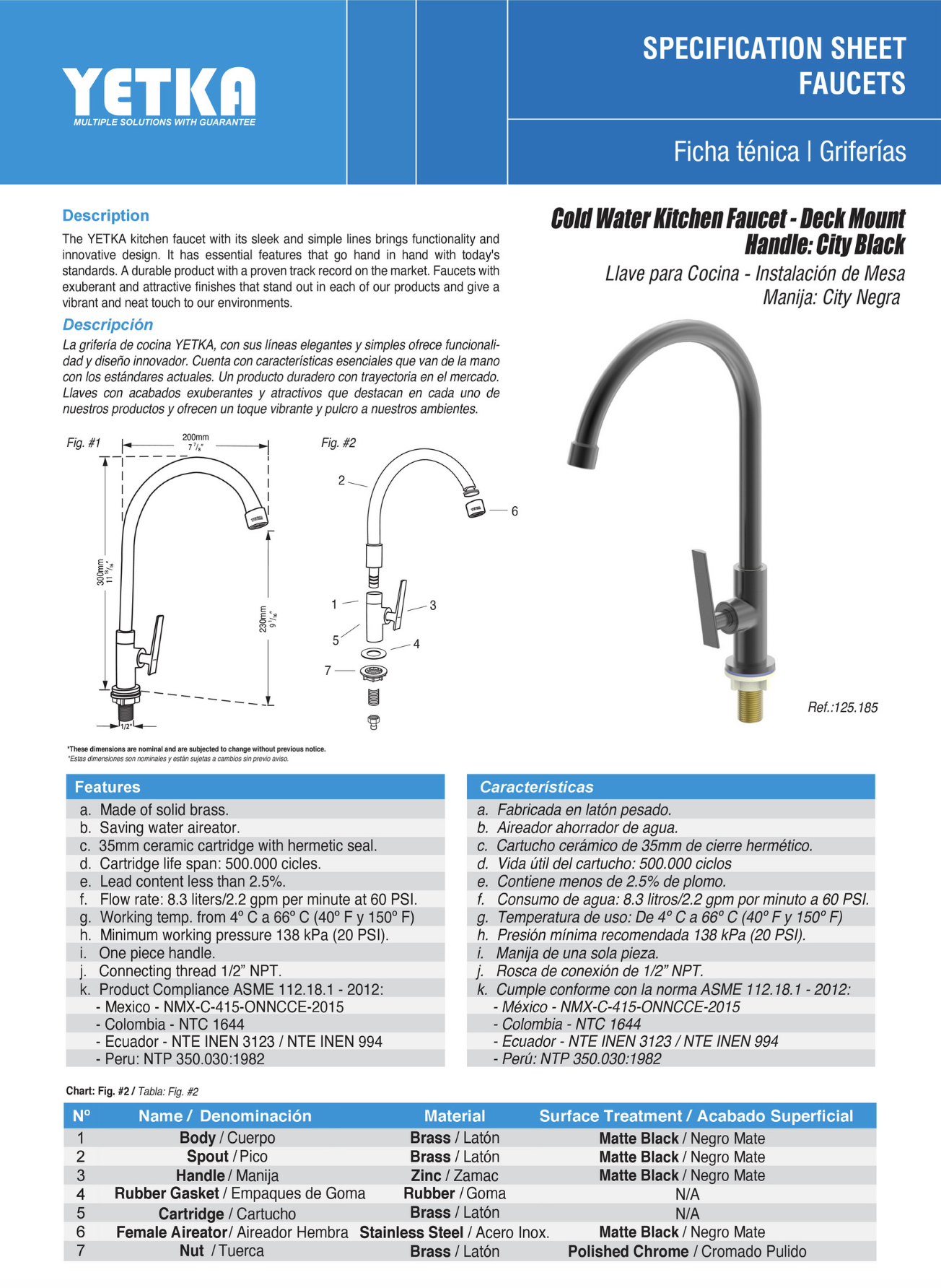 - Ambas versiones cuentan con cuerpo fabricado en latón cromado de alta resistencia, garantizando durabilidad, estabilidad y un acabado que se mantiene brillante o mate sin deteriorarse.