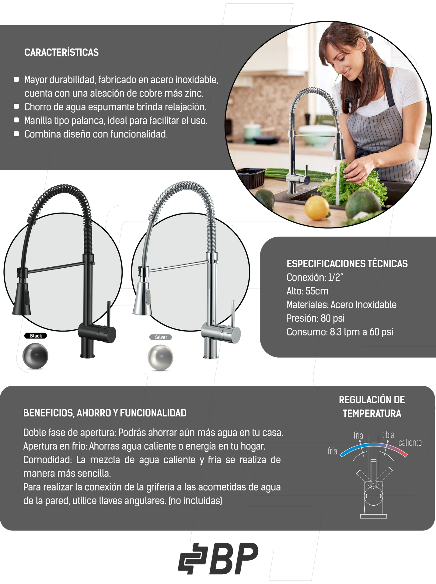 - Manilla tipo palanca, ideal para facilitar el uso.