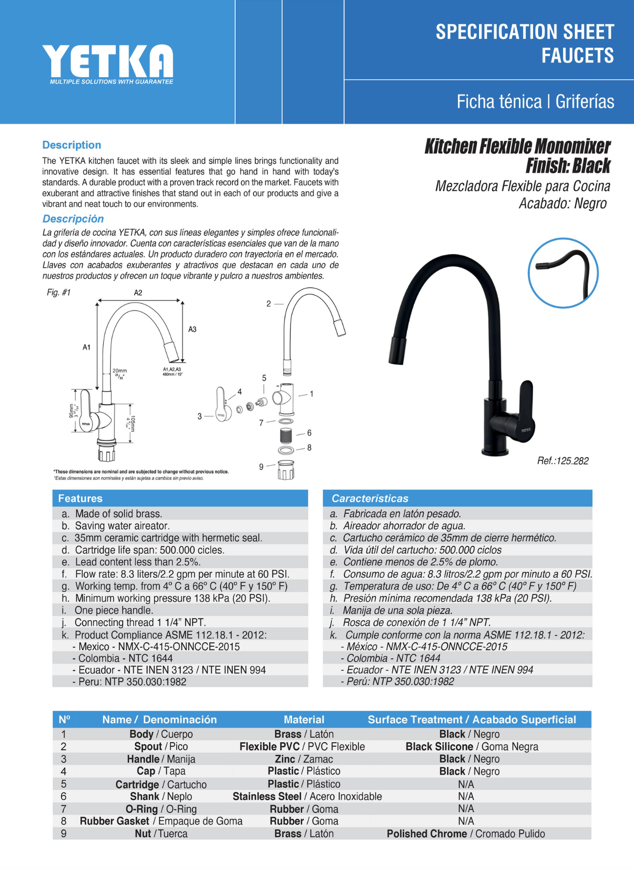 GPL0548 YETKA GRIFERIA MEZCL COCINA MESA FLEXIBLE - CUELLO NEGRO