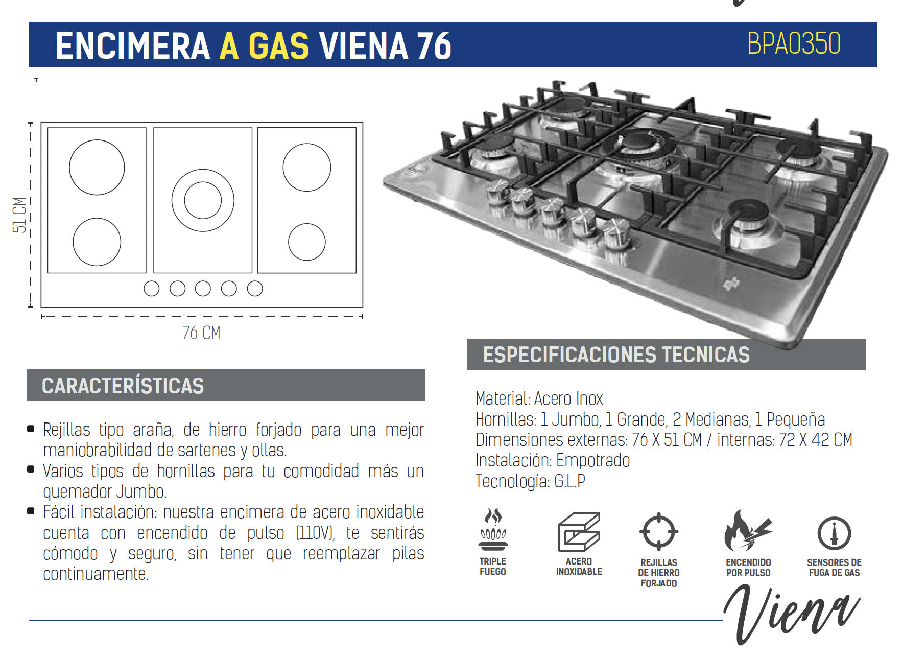 - Encendido por pulso (110V) – cómodo, seguro y sin necesidad de pilas