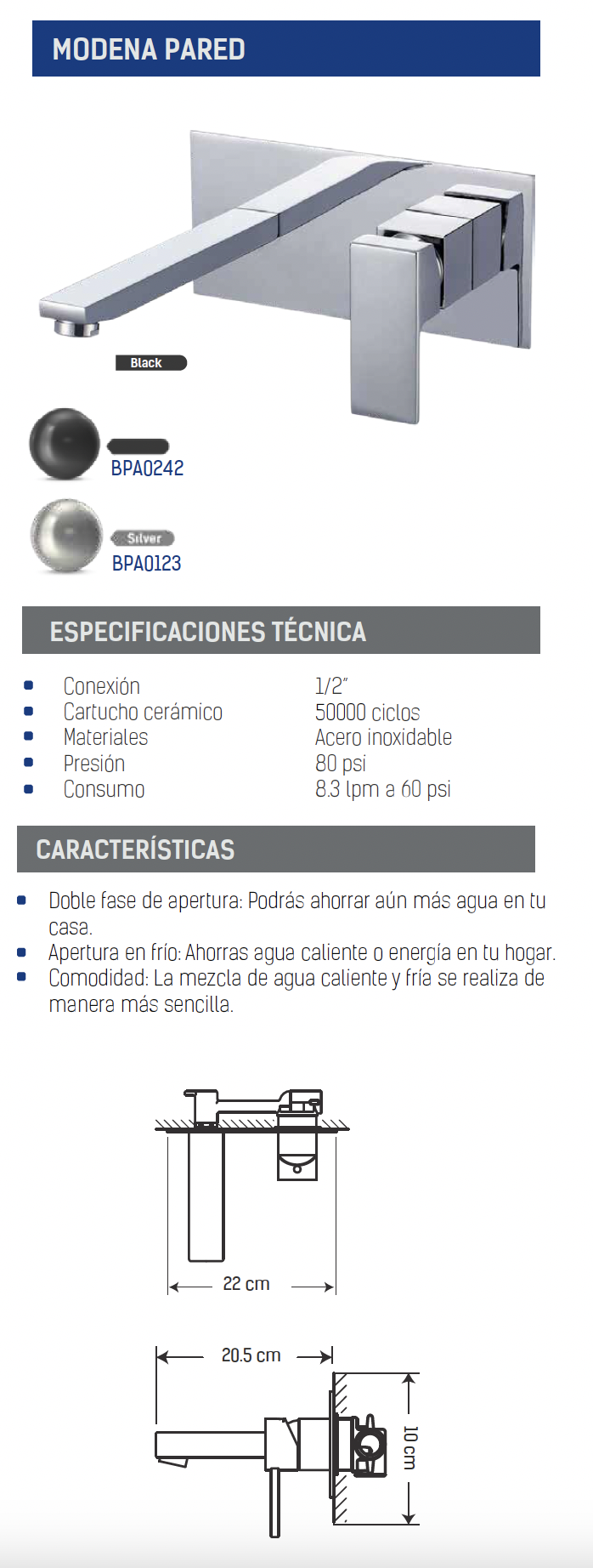 - Manilla tipo palanca, ideal para facilitar el uso.