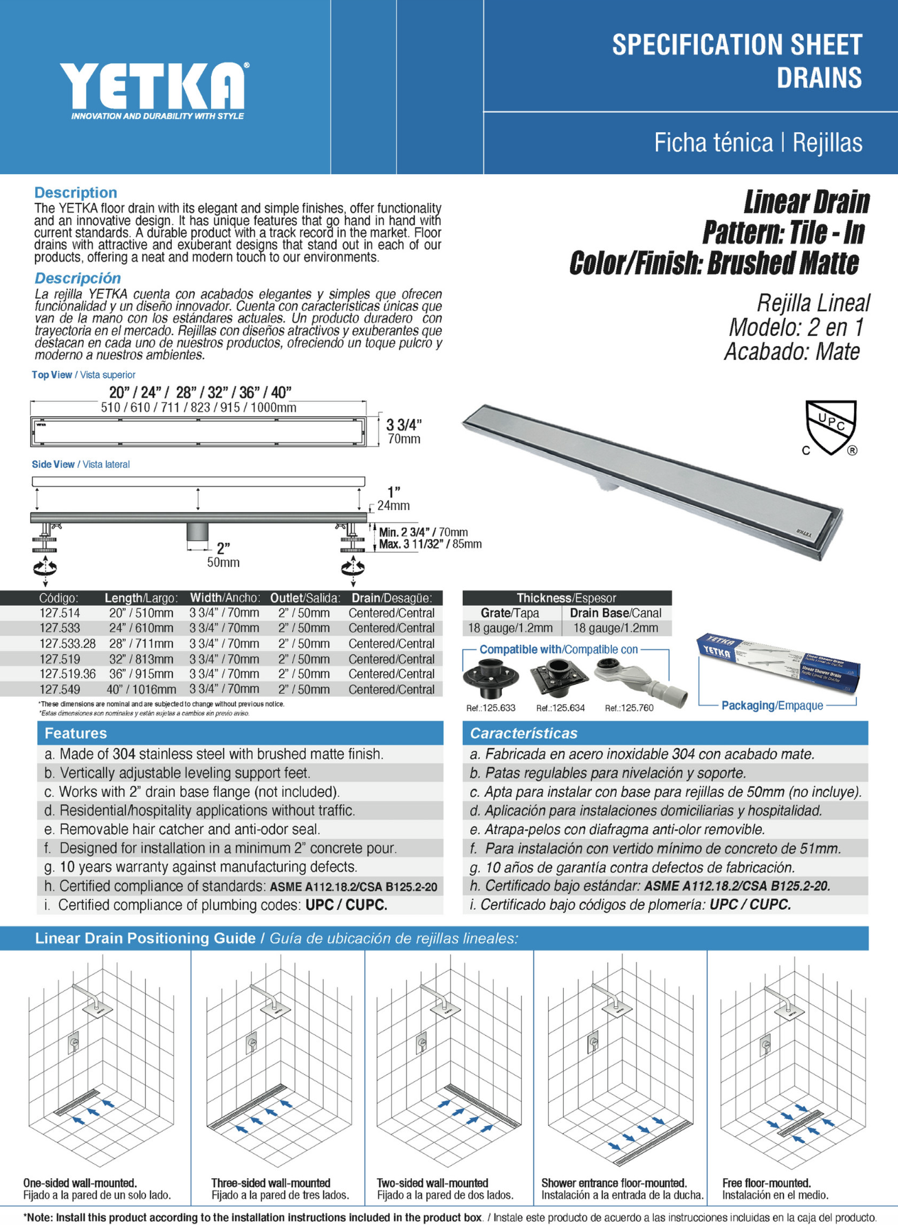 - La rejilla lineal inoxidable Lisa/Empotrada 2 en 1 ofrece una solución moderna, elegante y altamente funcional para duchas, baños, terrazas y zonas húmedas que requieren una evacuación eficiente del agua.