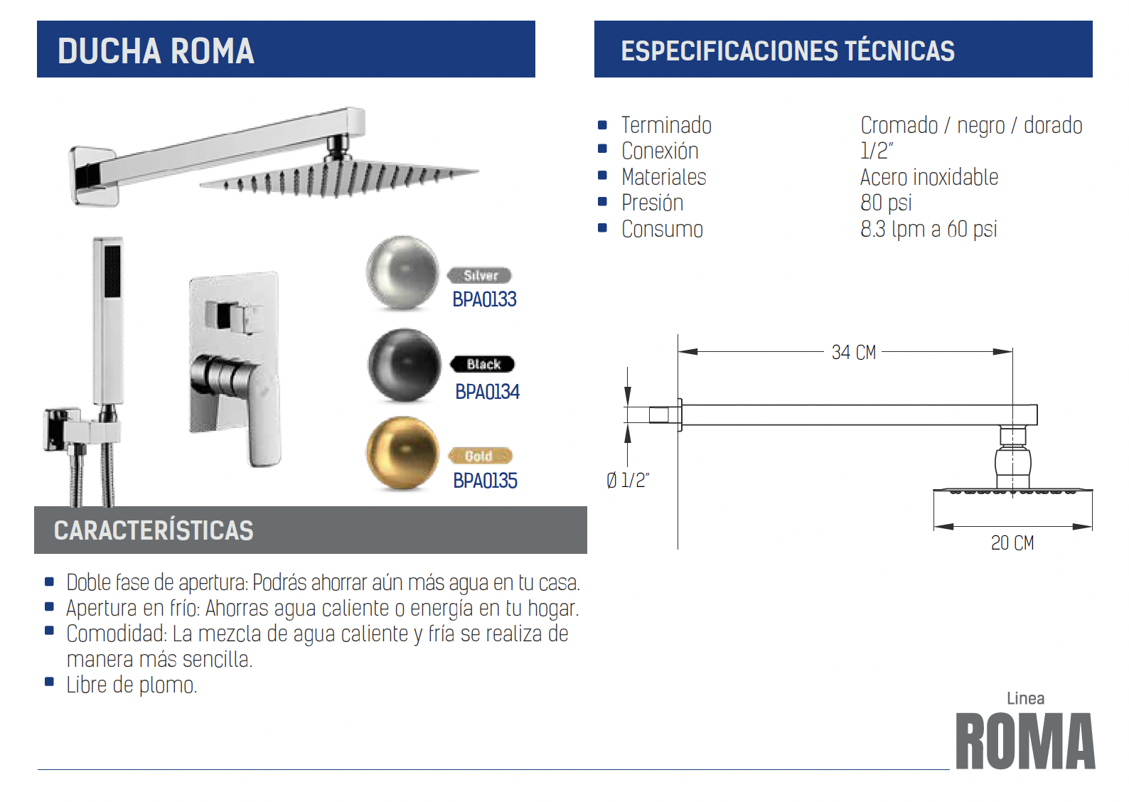 - Cabeza de ducha fabricada en resinas plásticas de alta resistencia.