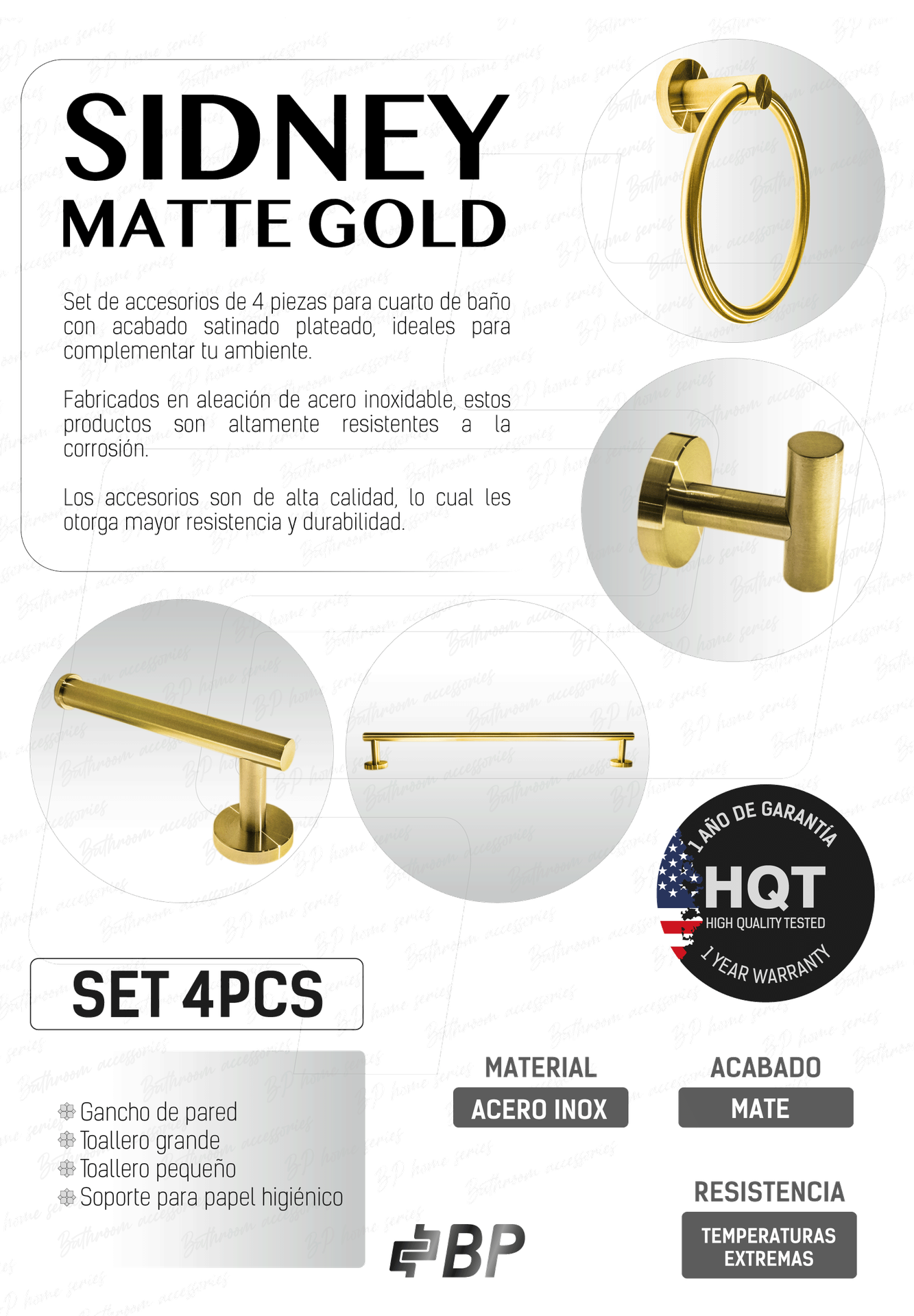 GPL0336 BEELEE ACCESORIO BANO SIDNEY 4PZS ORO MATTE (GOLD)