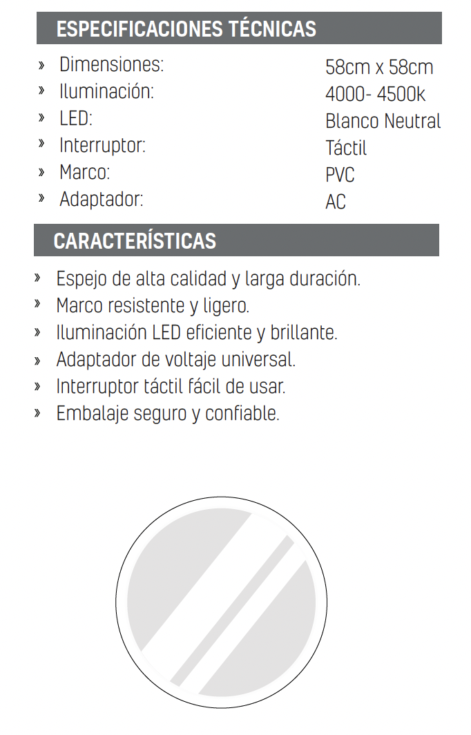 - Viene en caja reforzada para proteger el espejo durante el transporte.