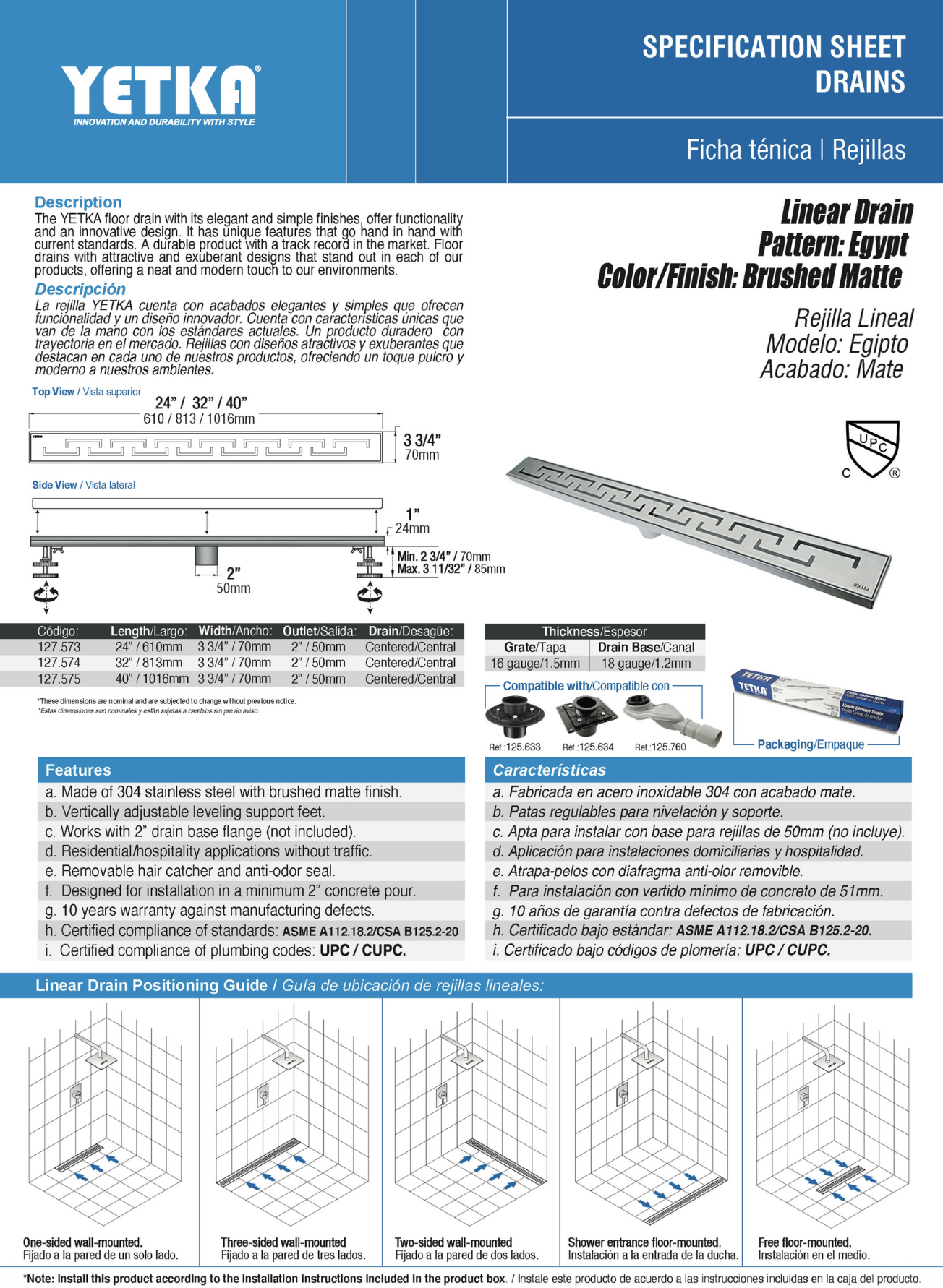 • Disponible en 60 cm y 80 cm, se adapta a múltiples proyectos arquitectónicos y tipos de ducha. Es ideal para ambientes que buscan un drenaje eficiente con un toque visual elegante y único.