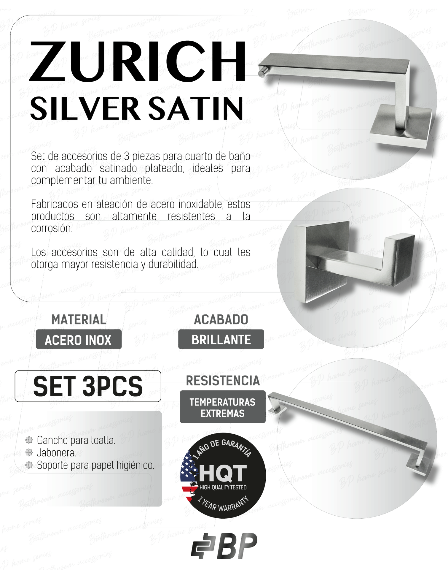 GPL0469 BEELEE ACCESORIO BANO ZURICH 3 PZS PLATA MATTE (SILVER)