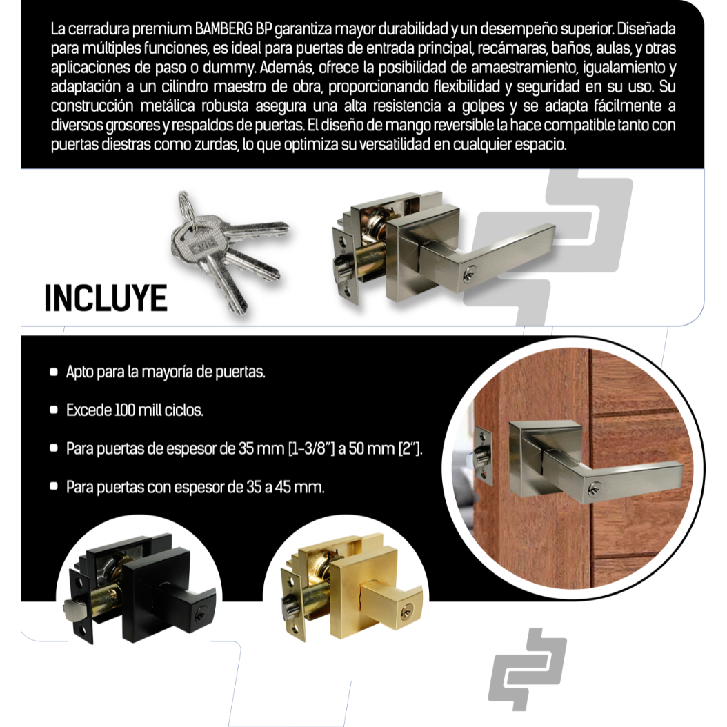 - Diseñada para múltiples funciones, ideal para puertas de dormitorio, baños etc.