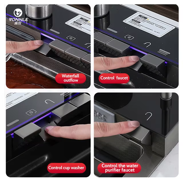 - Sistema: Fregadero inteligente con control digital, botones y pantalla LED