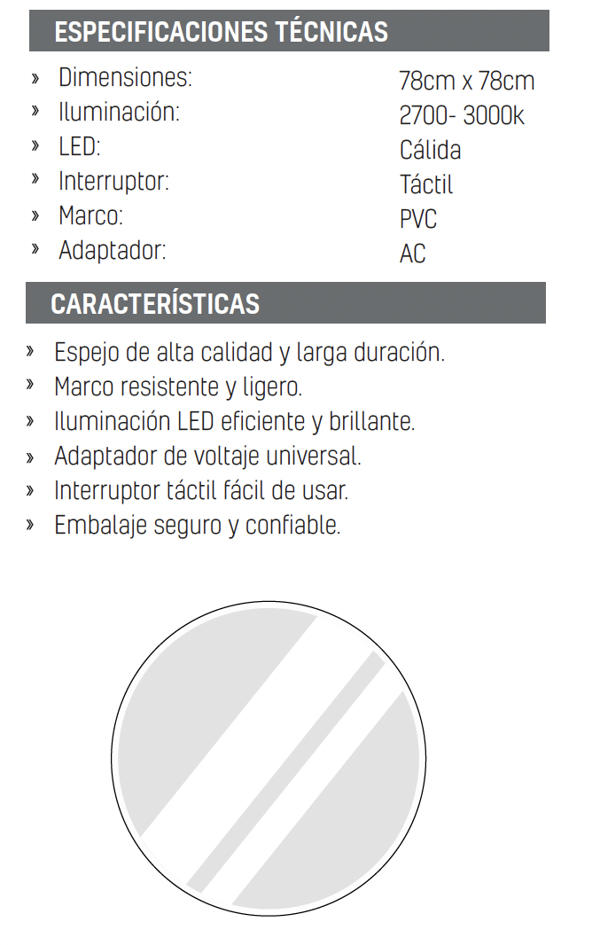 - Viene en caja reforzada para proteger el espejo durante el transporte.