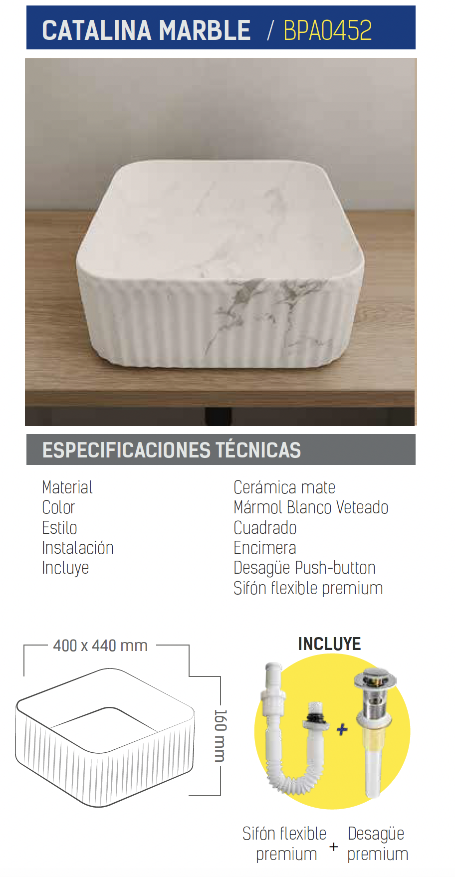 GPL0986 BEELEE LAVAMANOS CATALINA CUADRADO - MARBLE C/BETAS