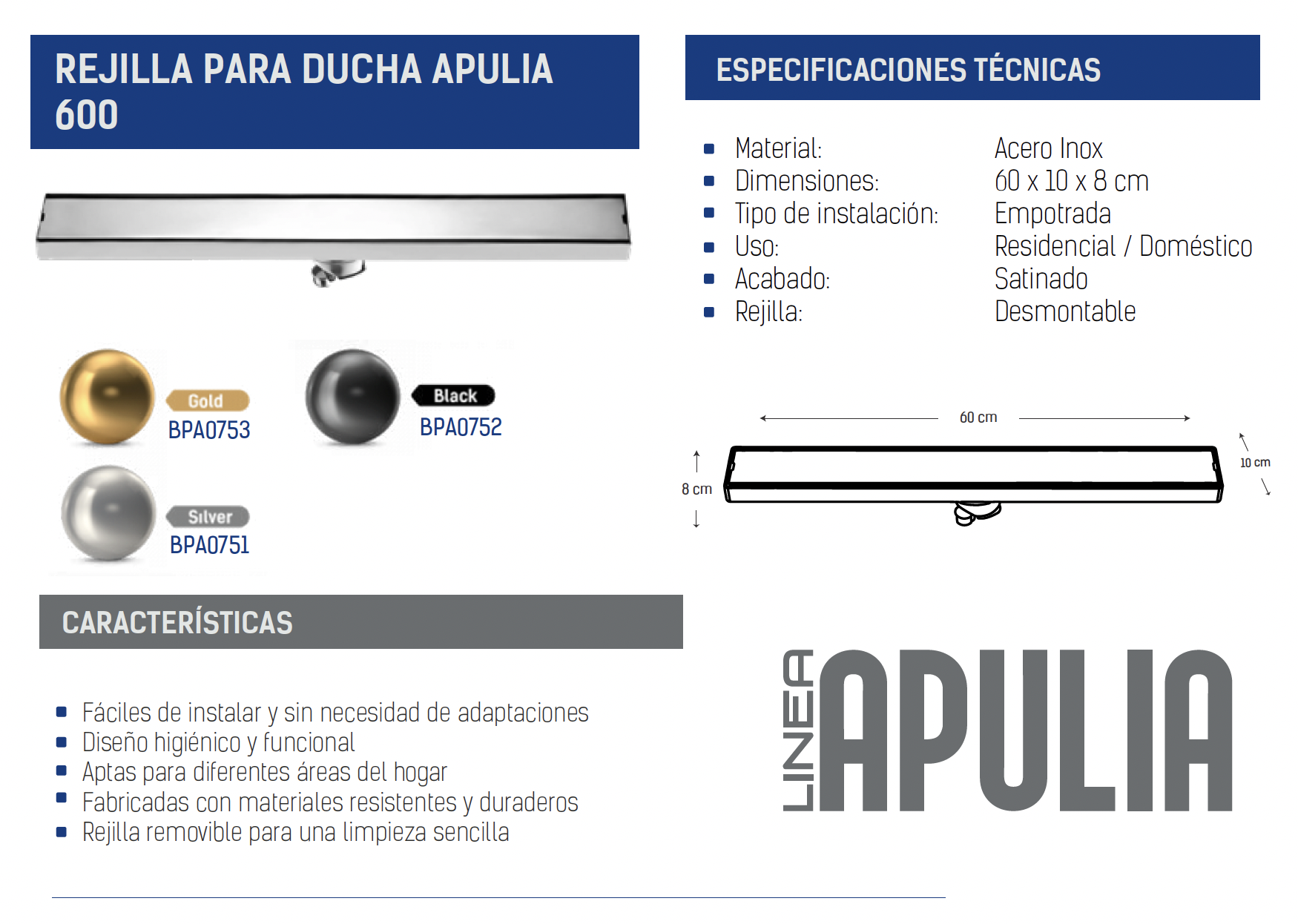 - Acabado: Satinado