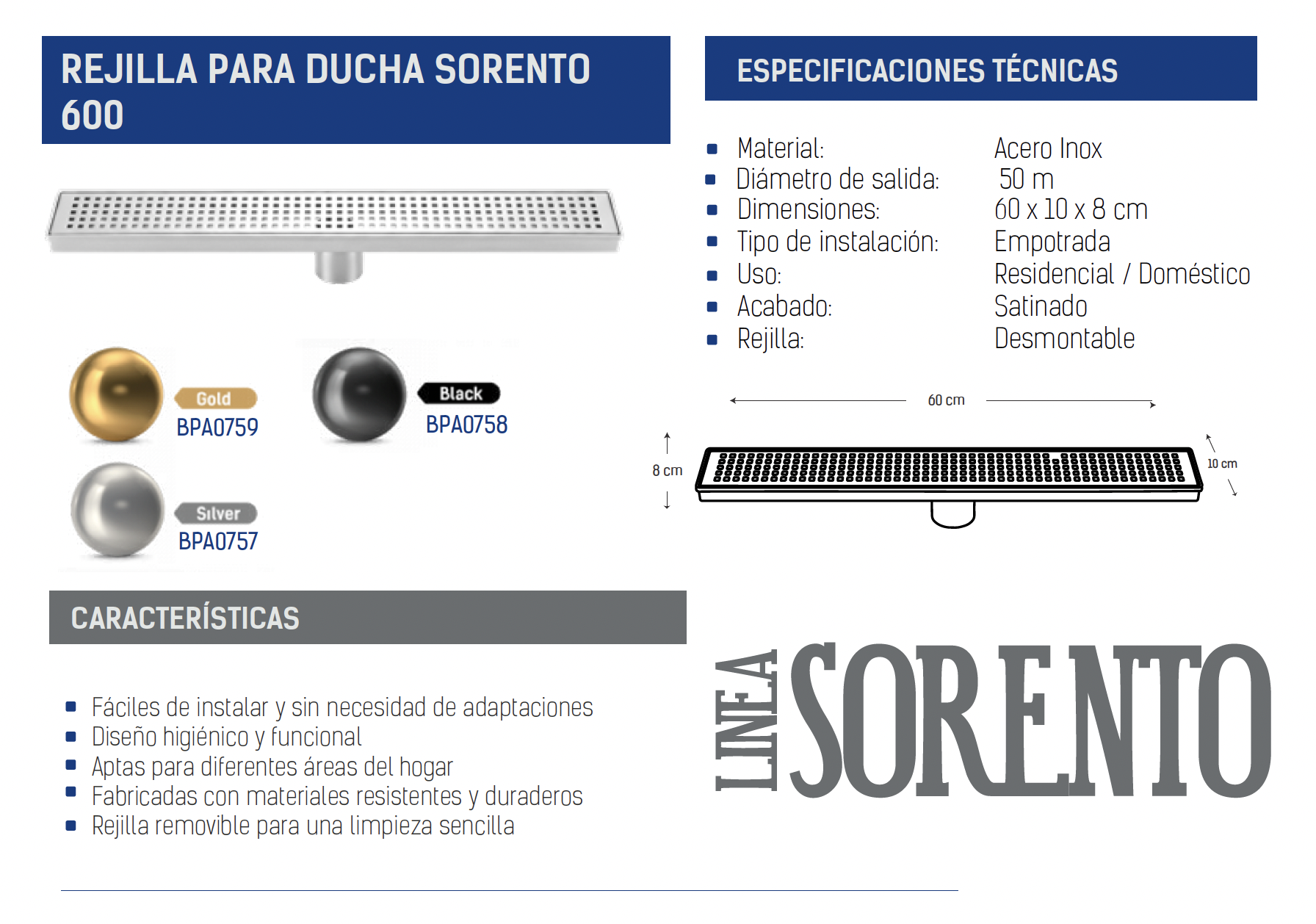 GPL1059 BEELEE REJILLA LINEAL SORENTO NEGRO (60X10CM) - BLACK 600