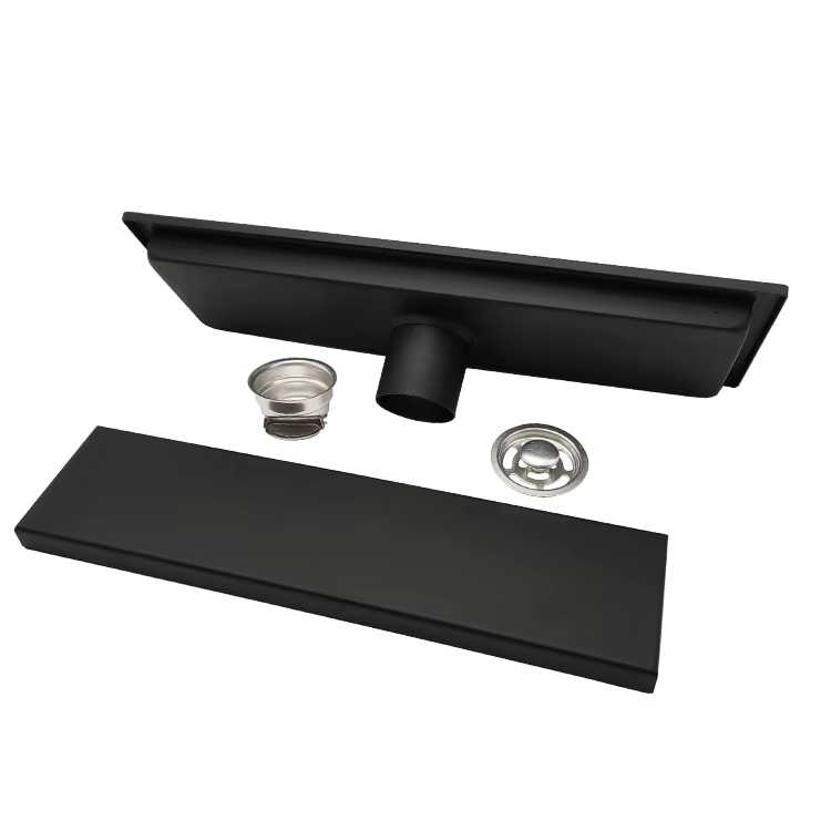 GPL1072 AKUA REJILLA LINEAL LISA REVERSIBLE PISO BLACK 40X10 - A. INOX (EC33B) NEGRO MATE