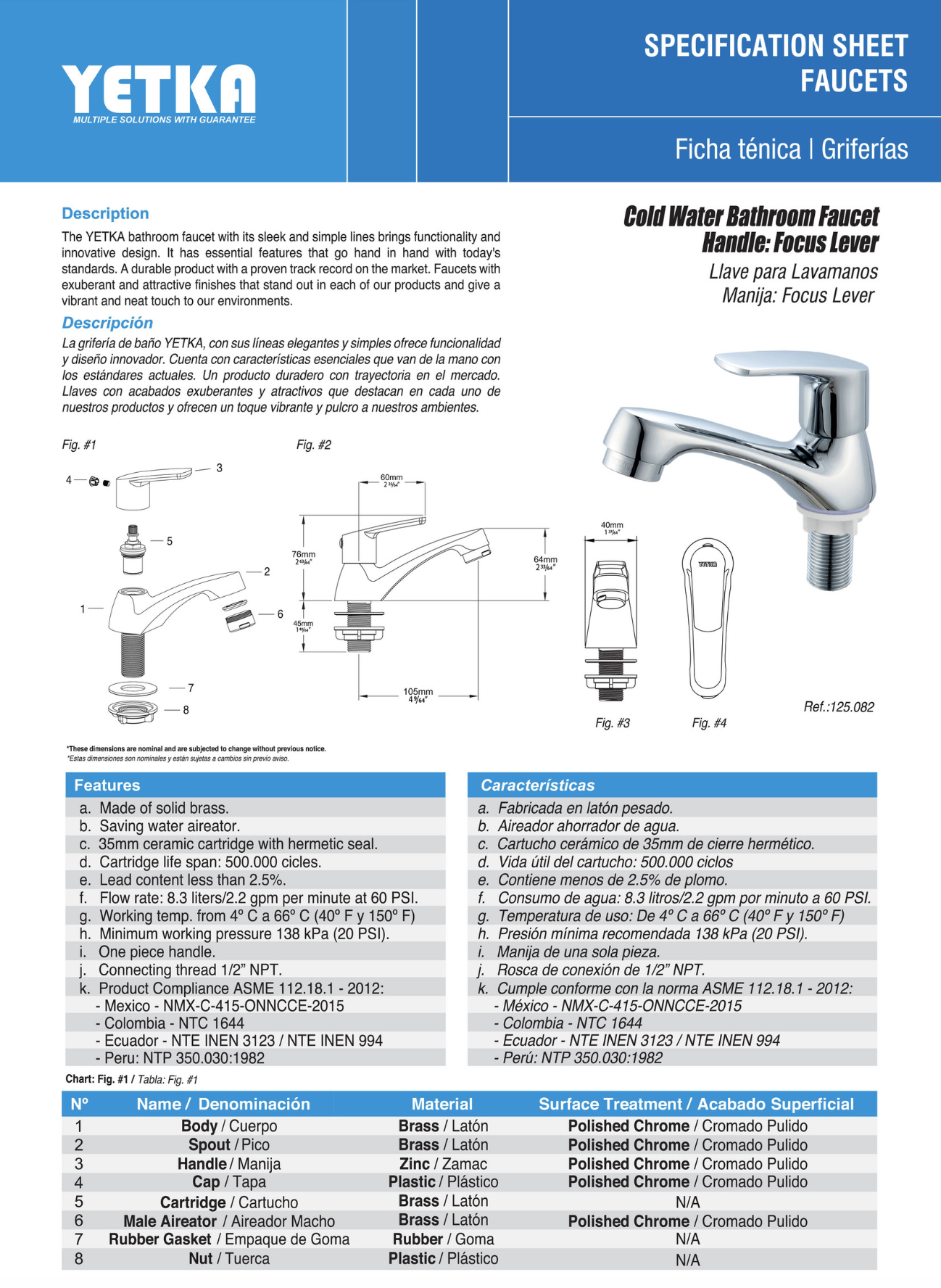- Su instalación en mesón de un solo agujero facilita la colocación en lavamanos empotrados o de sobreponer, brindando un acabado limpio y profesional.