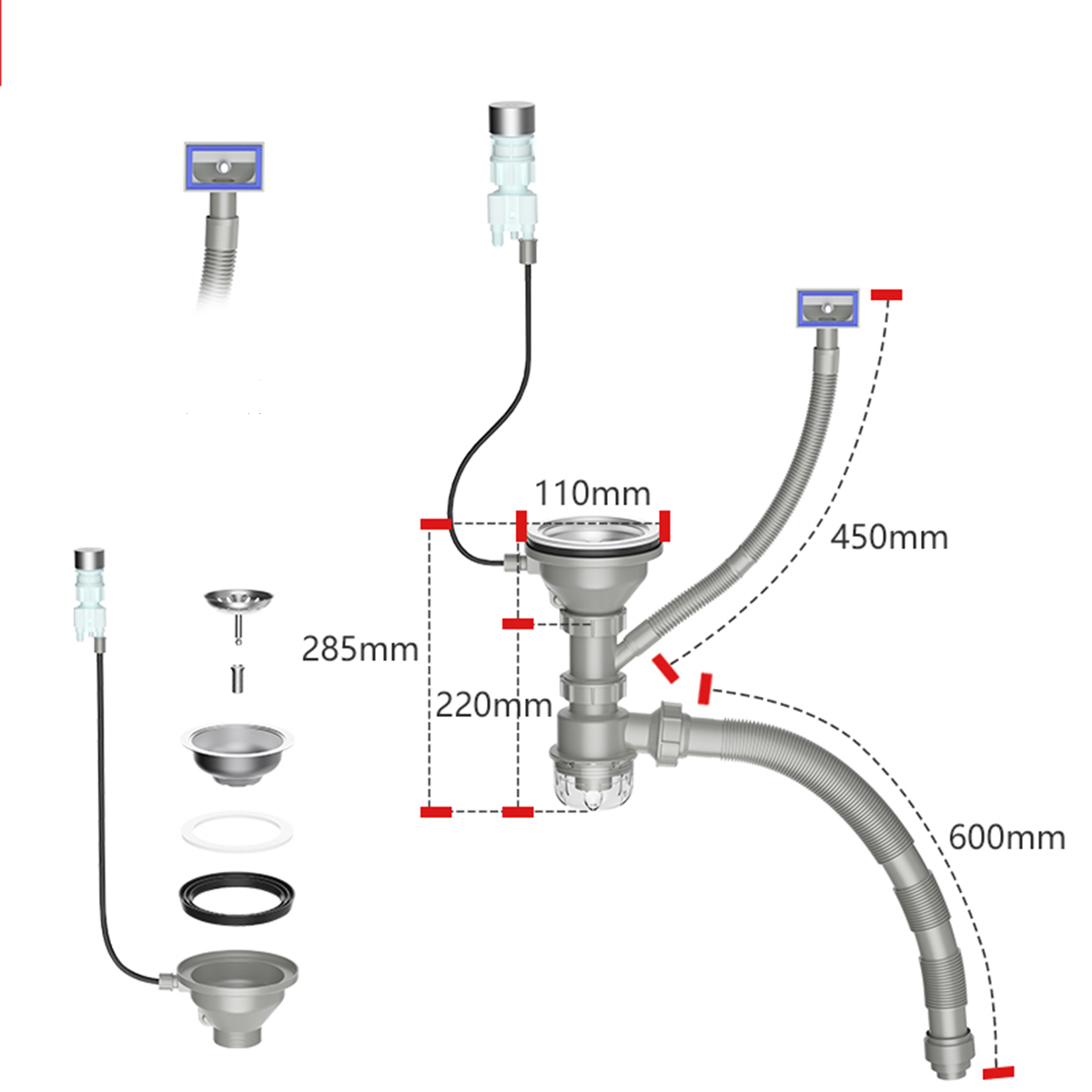 - Para fregaderos con desagües de 4" (110mm)